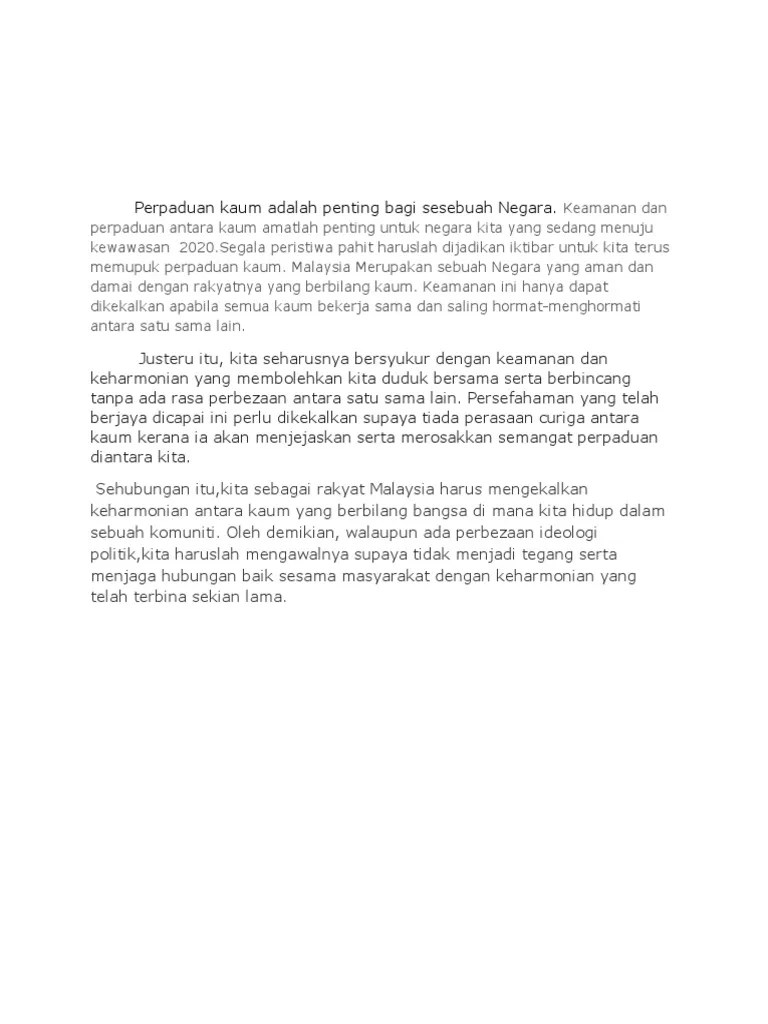 Jika semua warganegara malaysia yang berbilang kaum menceburkan diri dalam segala perihal kemasyarakatan, terutamanya dalam bidang pendidikan dan dapat . 6 1.1 cabaran implikasinya mengakibatkan semua etnik. Contoh karangan masalah yang dihadapi di dalam membina perpaduan masyarakat berbilang kaum di malaysia:.